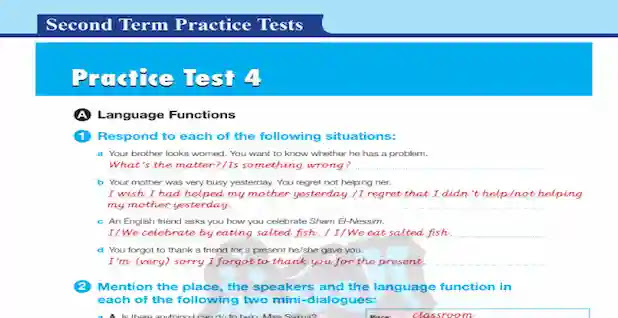 إجابات كتاب وورك بوك للصف الثاني الثانوي وإجابات إمتحانات واسئله اللغة الإنجليزية