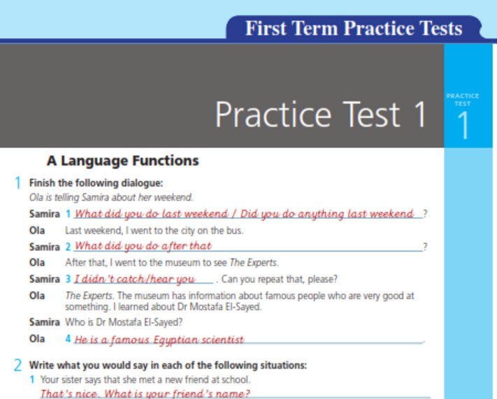 تحميل اجابات Practice Test 1 A ورك بوك الثالث الثانوي 2019 بوابة كويك لووك العربية