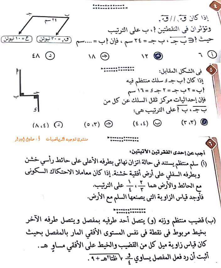 امتحان الاستاتيكا للثانوية العامة دور أول 2018