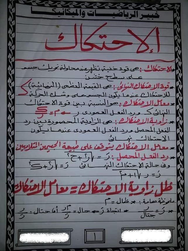 قوانين الاستاتيكا للصف الثالث الثانوي 2018 م محمد امين رياضه ثانويه عامة فيسبوك