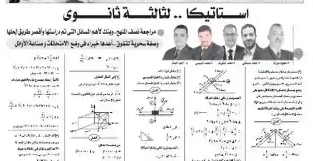 تحميل كل مراجعات و حلول مادة استاتيكا للثانوية العامة 2018 اجابات دليل التقويم وحلول الكتاب المدرسى نماذج الوزارة ملحق الجمهورية عام ولغات