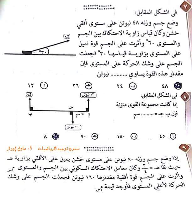 مراجعة استاتيكا للثالث الثانوى اهم مسائل الاستاتيكا للصف الثالث الثانوى 2019 بالاجابات