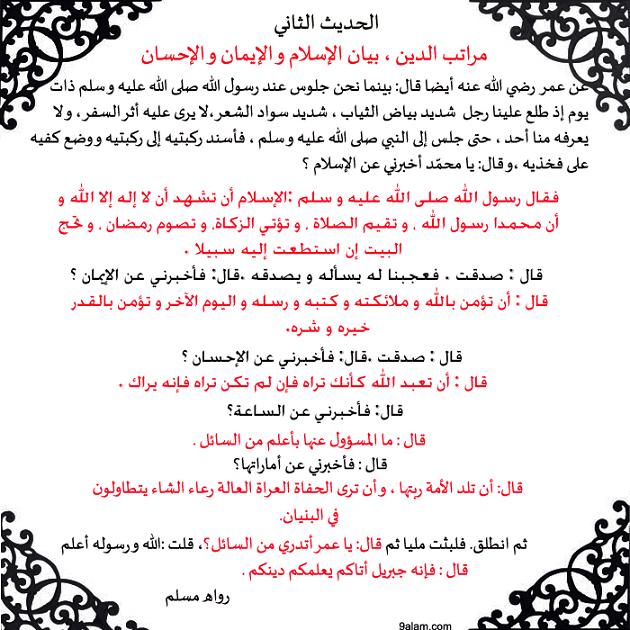 الأربعون النووية الحديث الثاني مراتب الدين