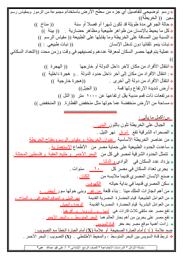 أقوى مذكرة فى الدراسات الاجتماعية للصف الرابع الابتدائي ترم ثاني 2018 مستر محمد ناصر