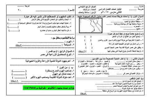امتحان الدراسات الاجتماعية للصف الرابع الابتدائي نصف الترم الثاني امتحان الميد تيرم في الدراسات الاجتماعية