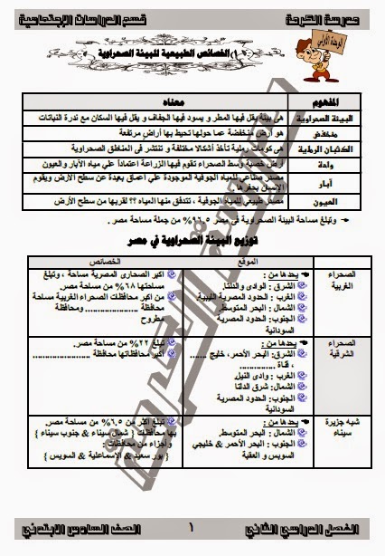 الدراسات الاجتماعية مذكرة الدراسات الاجتماعية للصف السادس الابتدائى الترم الثانى 2015 2016
