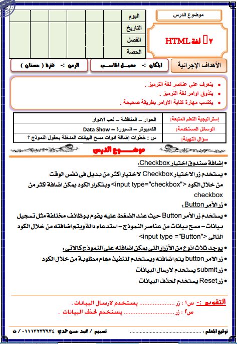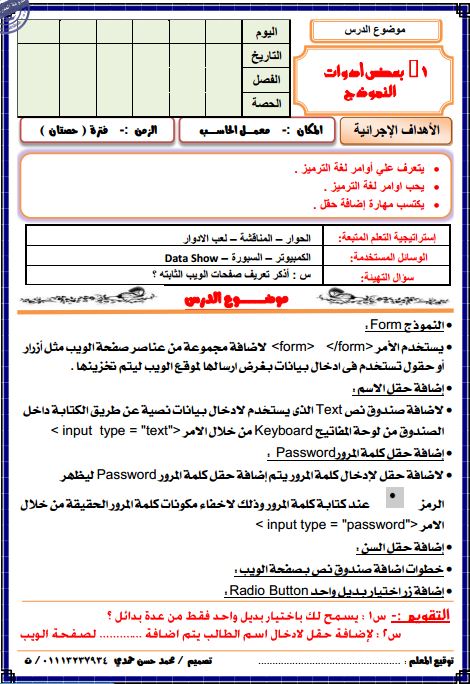 شرح الحاسب الالى الصف الثانى الاعدادى ترم تانى الدرس الاول Html شرح Form النموذج Youtube
