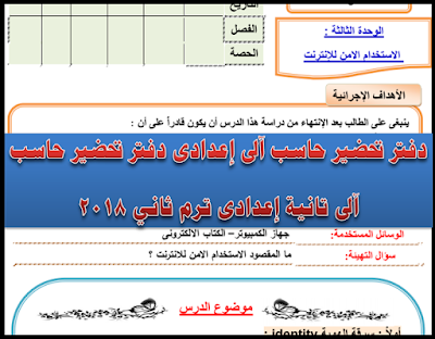 تحضير الكتروني مادة الحاسب الالي الصف الثاني الاعدادي منهج الترم الثاني