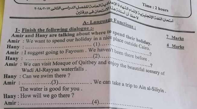 امتحان اللغة الانجليزية للثالث الاعدادى ترم ثانى 2018 محافظة اسيوط تم امتحانه فعلا
