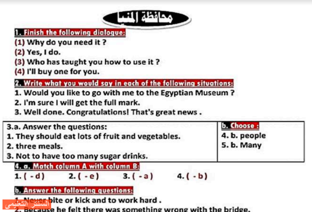 امتحان اللغة الانجليزية للصف الثالث الإعدادى الترم الثانى 2018 محافظة الاقصر