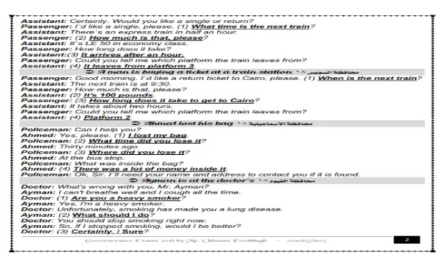 مواقف اللغة الانجليزية Situations للصف الثالث الإعدادي ترم ثاني 2018