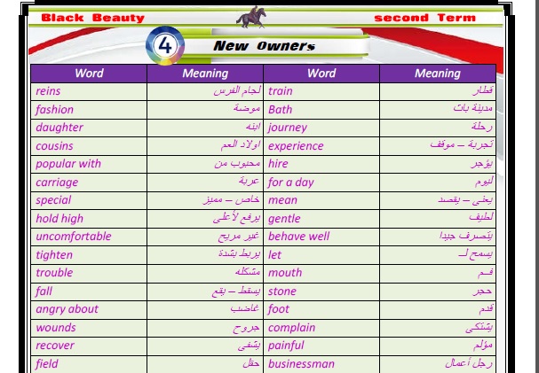 مذكرة قصة الحصان الاسود اللغة الانجليزية للصف الثالث الاعدادي الترم الثاني 2018 اعداد الاستاذ حمادة حشيش