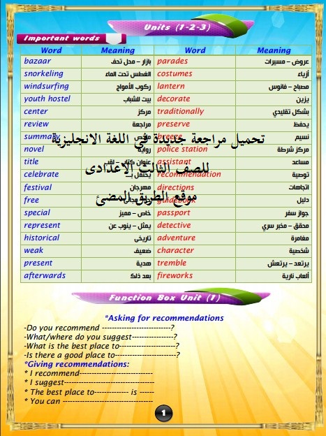تحميل مراجعة نهائية جديدة ورائعة فى اللغة الانجليزية للصف الثالث الاعدادى ترم اول 2018