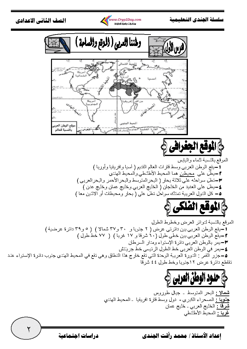 مذكرة الدراسات الاجتماعية للصف الثانى الاعدادى الترم الاول 2021