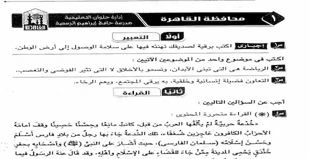 امتحانات اللغة العربية الصف الاول الاعدادي الترم الاول 2020 ادارات العام السابق