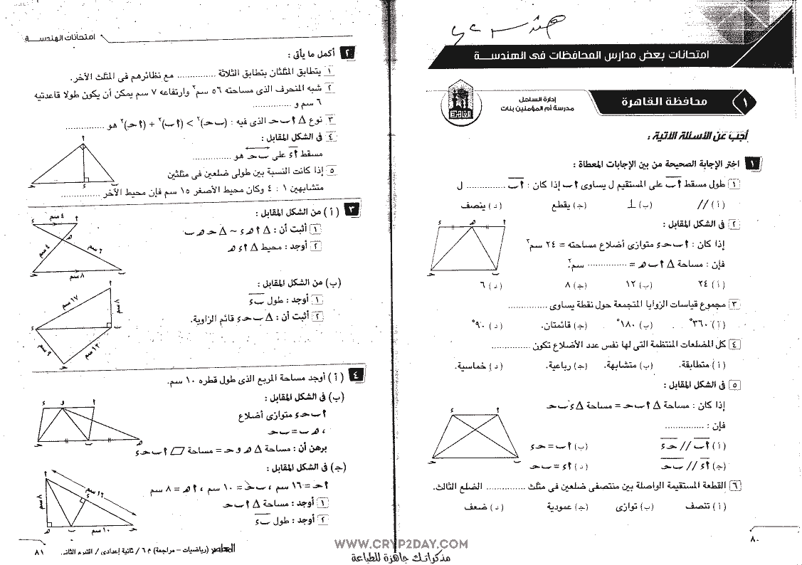 نماذج امتحانات ثاني اعدادي ترم اول لعام 2016