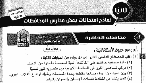 امتحانات المحافظات فى العلوم للصف الثالث الإعدادى للترم الثانى Scien