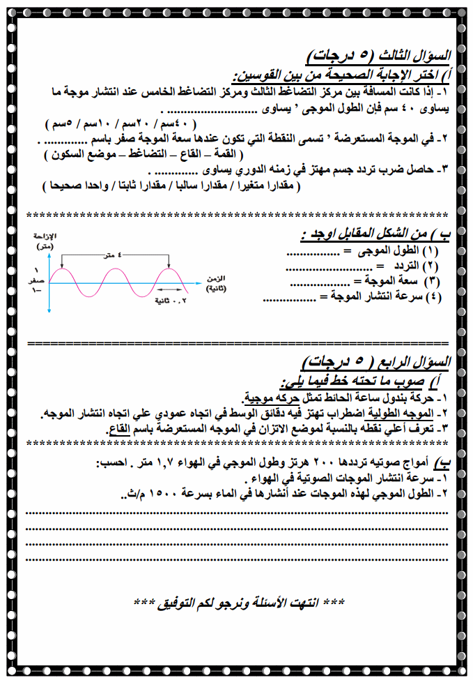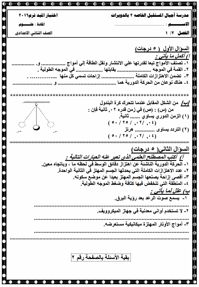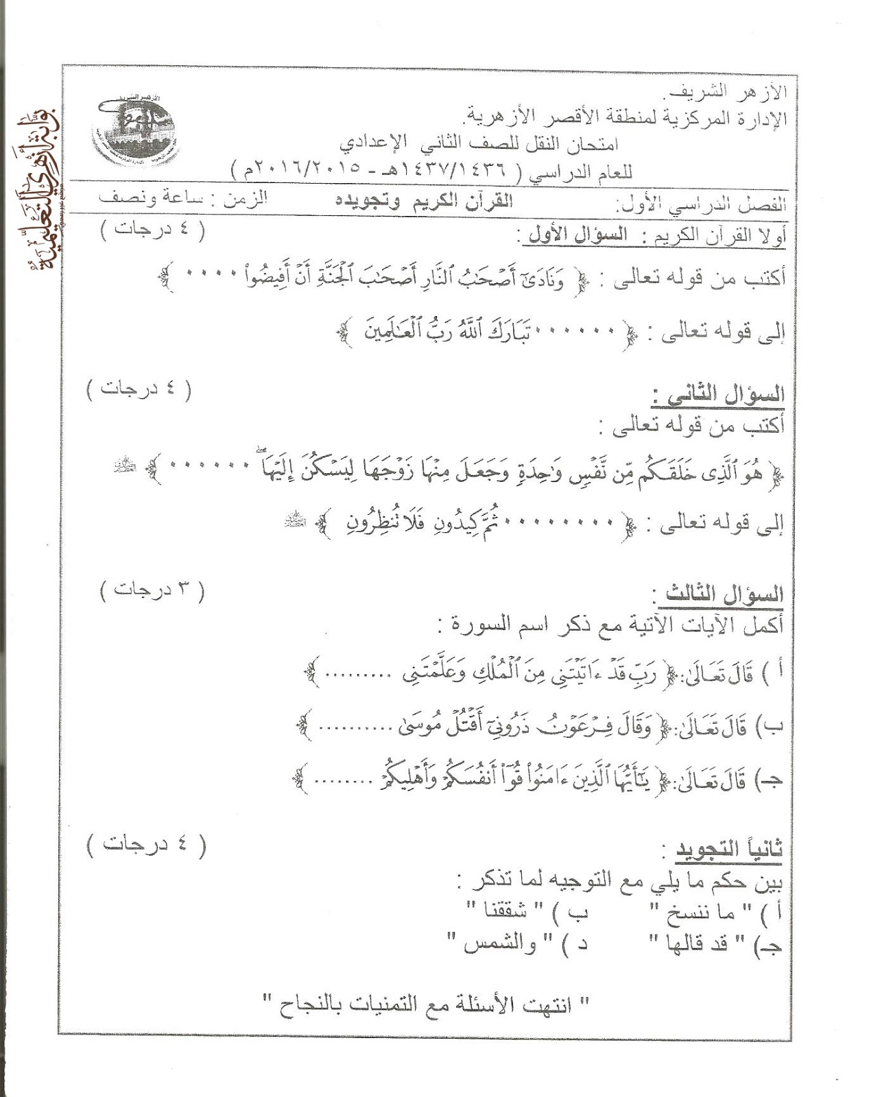 نماذج امتحانات ثاني اعدادي ترم اول لعام 2016