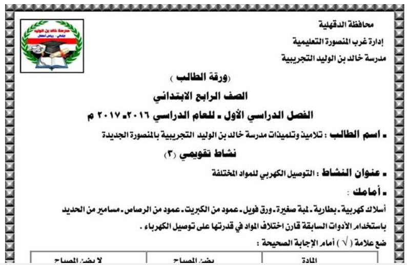 قنبلة كل نماذج الاختبارات العملي في مادة العلوم للصف الرابع الابتدائي 2017 الترم الاول عام ولغات Science
