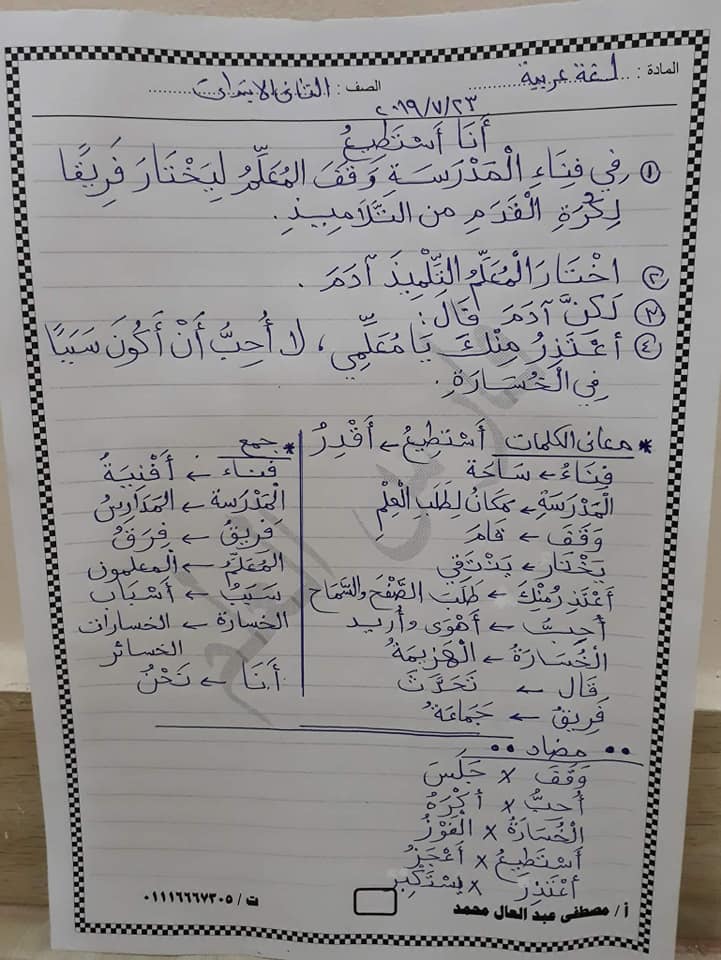 Adz4u Omniawagdy شيتات شرح موضوع أنا أستطيع فى اللغة العربية للصف الثانى الابتدائى بالقرائية الترم الأول للأستاذ الفاضل أحمد بدير عبد العاطى