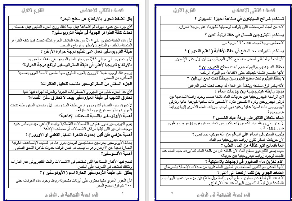 أفضل مذكرة في العلوم الصف الثانى الاعدادى الترم الثاني علوم ثانية اعدادى مذكرة المظالى