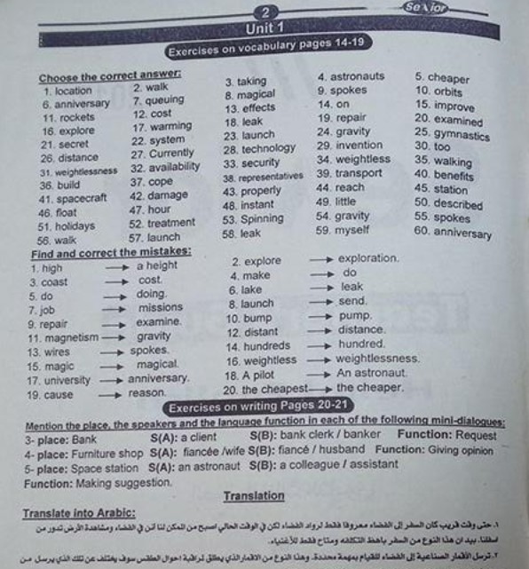 كل اجابات كتاب Senior للغة الانجليزية للثالث الثانوى للمنهج الجديد 2017