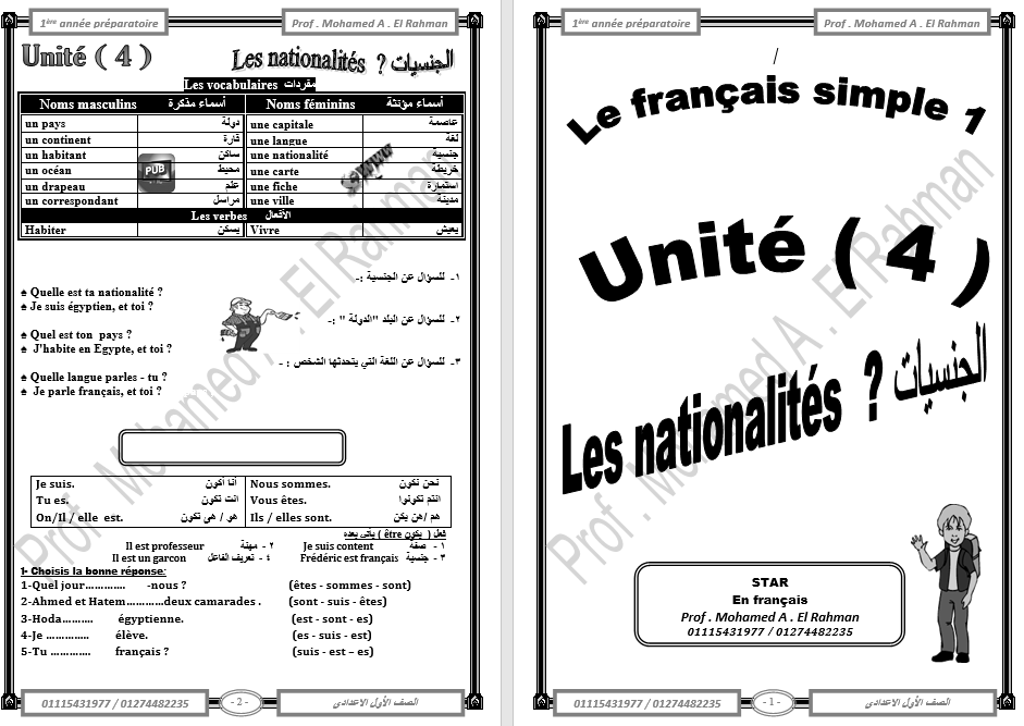 اقوى مذكرة ورد لمنهج Le Francais Simple للصف الاول الاعدادى ترم ثانى منهج جديد
