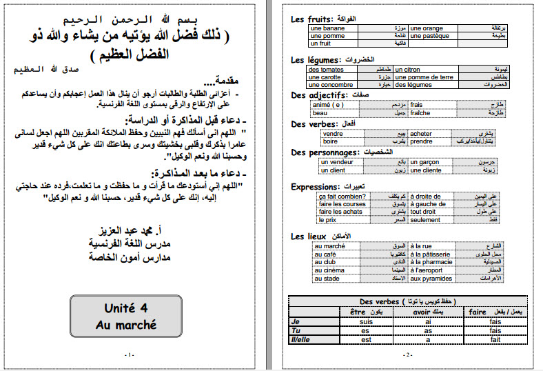 مذكرة لغة فرنسية للصف الاول الاعدادى الترم الاول الامتحان التعليمى