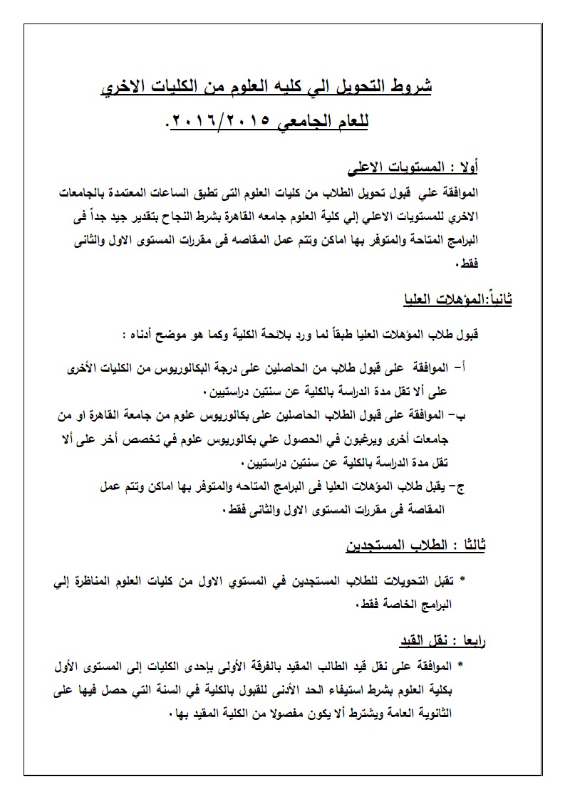 شئون التعليم والطلاب كلية العلوم جامعة القاهرة