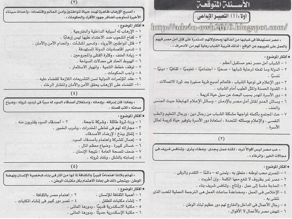 أسئلة التوقعات المرئية للصف الأول الثانوى 2015 للترم الأول تعبير