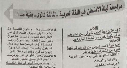 Thanawea5stares اهم توقعات امتحان العربي الصف الثالث الثانوي 2018