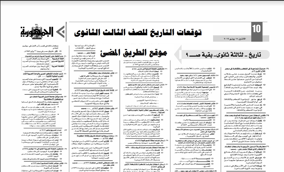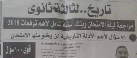 توقعات جريدة الجمهورية ليلة امتحان التاريخ ثانوية عامة 2018