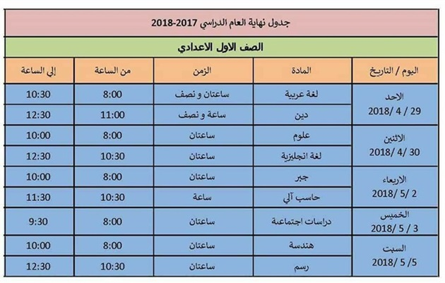 جداول امتحانات أخر العام الدراسي 2018 2019 محافظة الإسكندرية للتعليم المهني والمكفوفين كلمة دوت أورج
