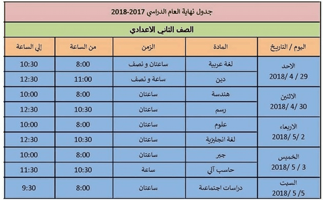جدول امتحانات آخر العام 2018 ابتدائي واعدادي وثانوي الفصل الدراسي الثاني موعد امتحانات الترم الثاني لكل من الصف الأول الثاني الثالث الرابع الخامس السادس الابتدائي موعد امتحانات الصف الأول الثاني الثالث الاعدادي والثانوي
