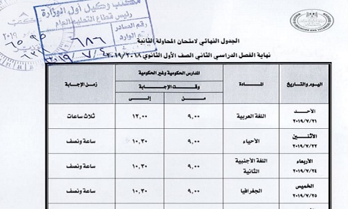 جدول امتحانات الصف الثاني الثانوي الدور الثاني 2019 كلمة دوت أورج