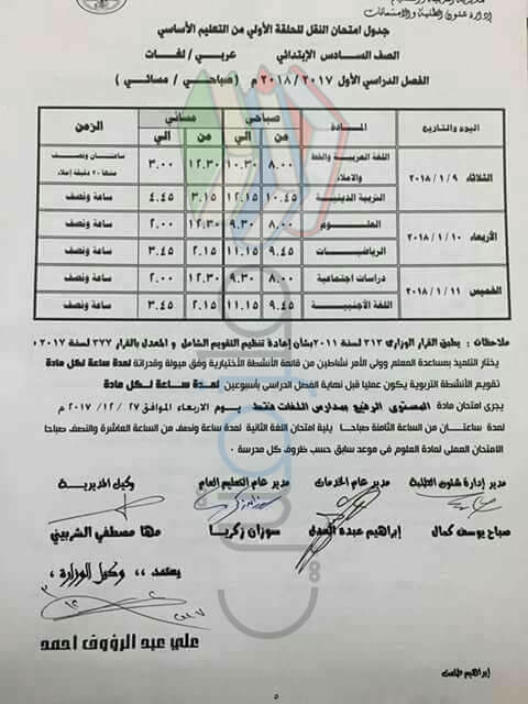 محافظة الدقهلية جدول امتحانات نصف العام 2018 لجميع المراحل الدراسية