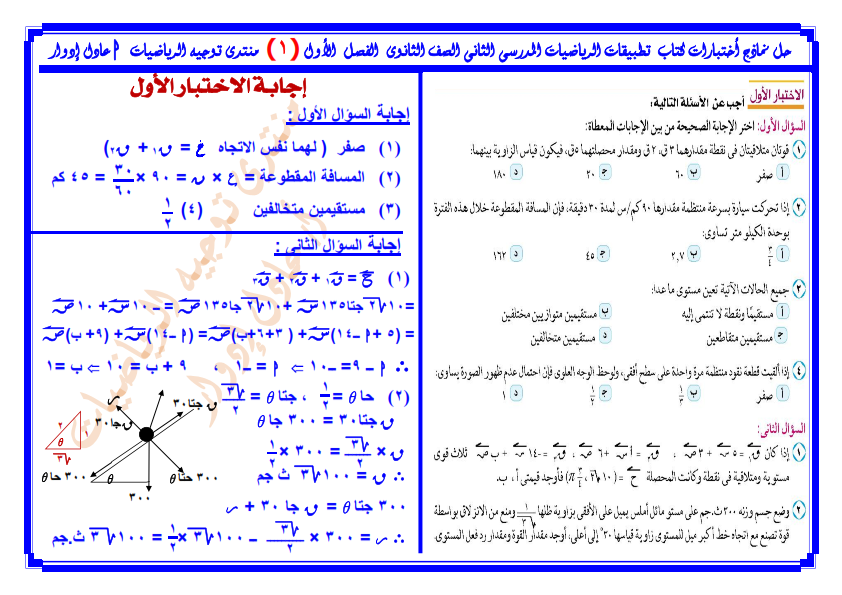 حل نماذج إختبارات كتاب تطبيقات الرياضيات للصف الثانى الثانوى القسم العلمى