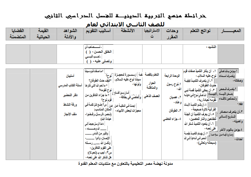خريطة نواتج التعلم للمرحلة الابتدائية 2016