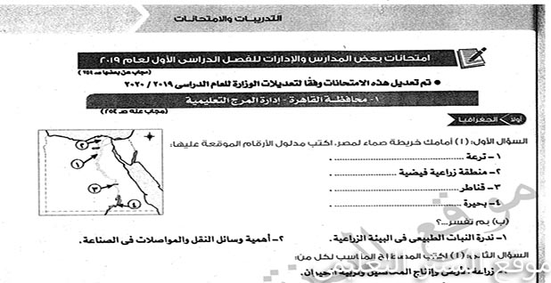 امتحانات الدراسات الاجتماعية للصف السادس الابتدائى الاسترشادية نصف العام 2019