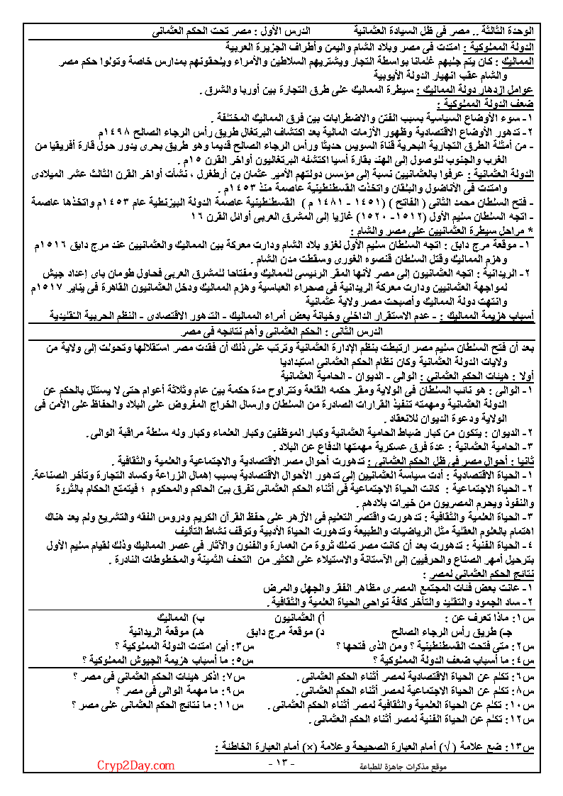 مذكرة دراسات للصف السادس الابتدائي ترم ثاني يلا نذاكر