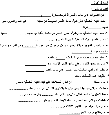بنك أسئلة الدراسات الاجتماعية للصف السادس الابتدائى الترم الاول Education Journal Exam