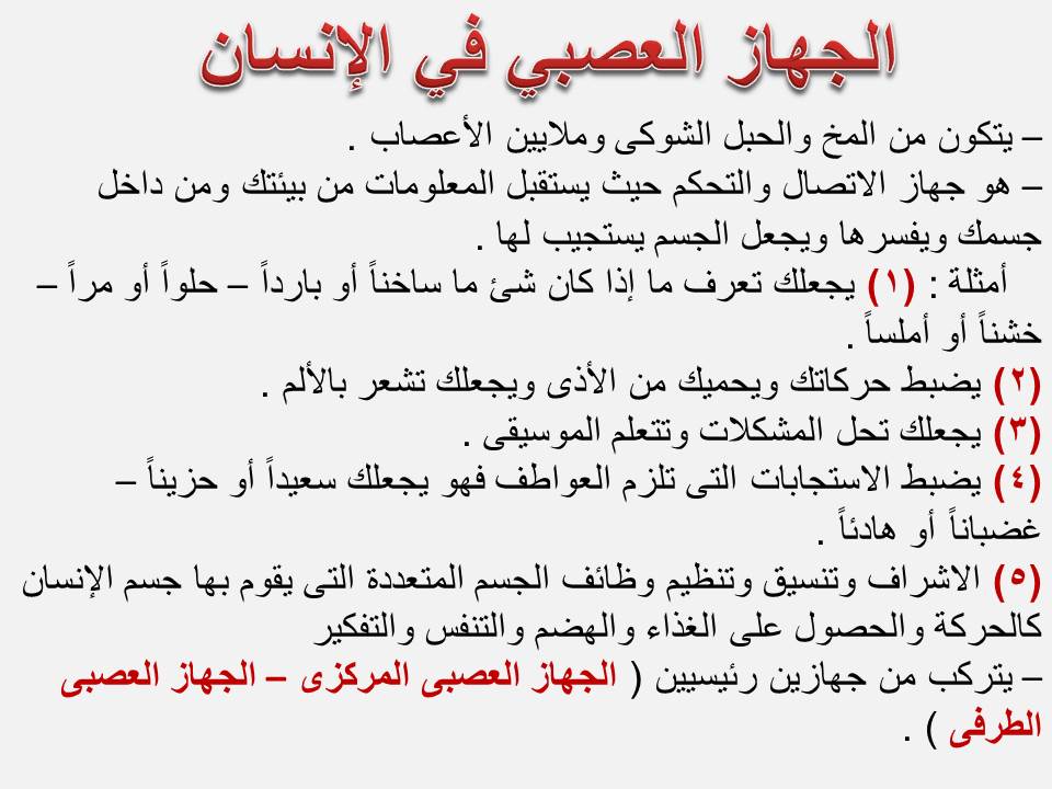 شرح درس الجهاز العصبي في الإنسان مادة العلوم الصف السادس الابتدائي الفصل الدراسي الأول Youtube