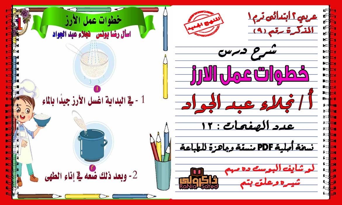 شرح درس خطوات عمل الارز منهج اللغة العربية للصف الثاني الابتدائي الترم الاول