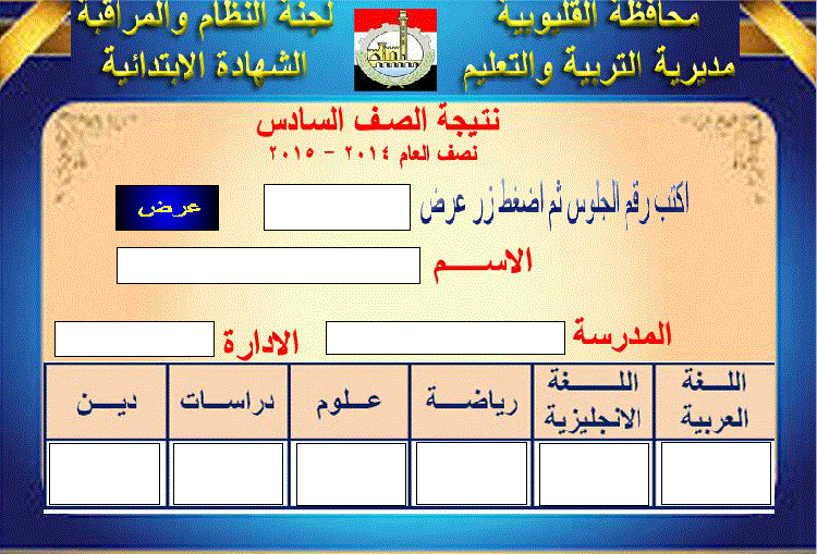 Adz4u Omniawagdy محافظة القليوبية نتيجة الصف السادس الابتدائى الفصل الدراسى الأول 2015 برقم الجلوس
