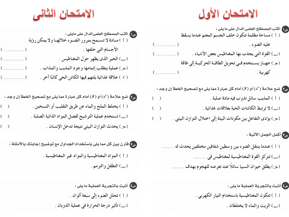 امتحانات سلاح التلميذ فى العلوم الخامس الابتدائى ترم ثانى 2016