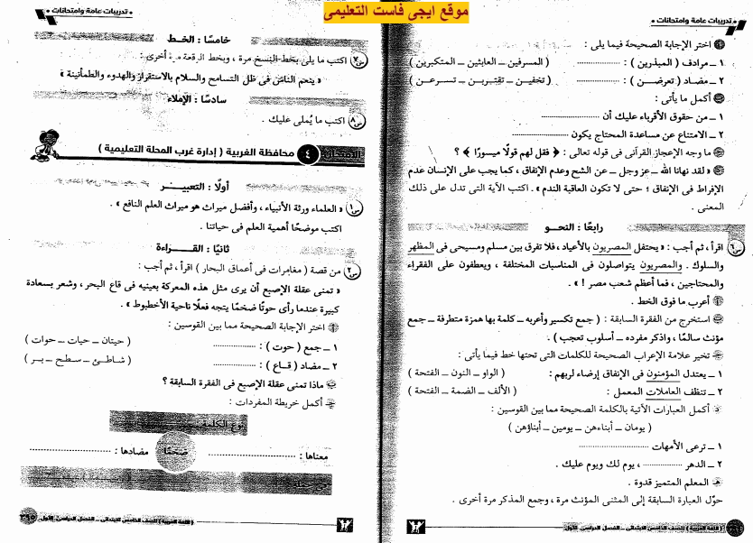 امتحانات سلاح التلميذ فى الدرسات الخامس الابتدائى ترم ثانى 2016