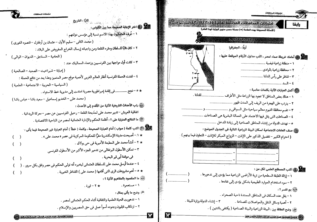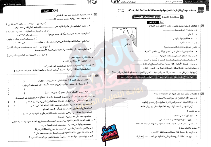 امتحان الدراسات للصف السادس الابتدائى الترم الاول للعام السابق للادارات مصر من كتاب سلاح التلميذ