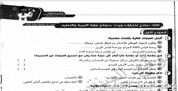 امتحانات العلوم للصف السادس الابتدائى الترم الاول للعام السابق للادارات مصر 2019 من كتاب سلاح التلميذ