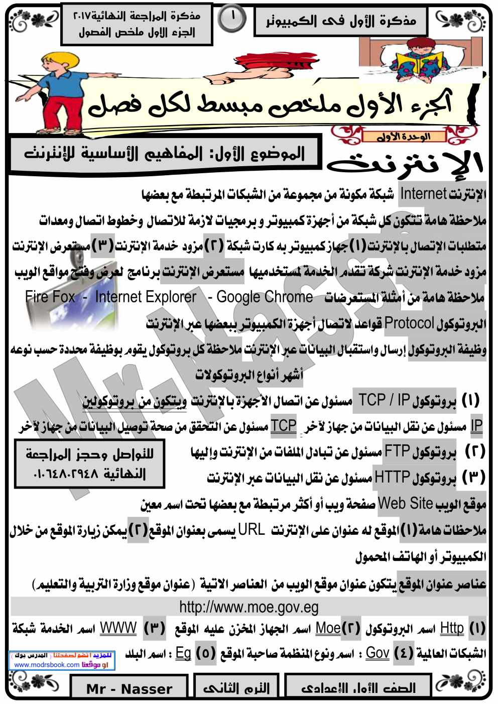 مذكرة شرح الحاسب الالى للصف الاول الاعدادي يلا نذاكر