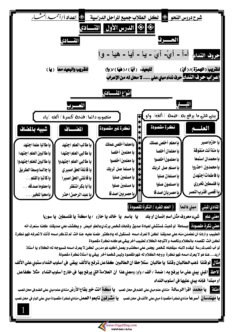 مذكرة نحو للصف الثالث الاعدادى الترم الثانى 2019 تلخيص النحو فى 3 ورقات